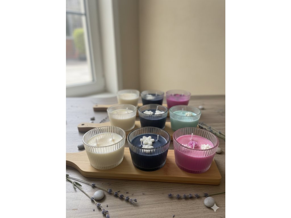 Upozornění: Zobrazené fotografie jsou výhradně ilustrační. Vzhledem k ruční výrobě se finální provedení produktu – obal (typ nádoby), barevný odstín, zdobení i typ knotu – může lišit.